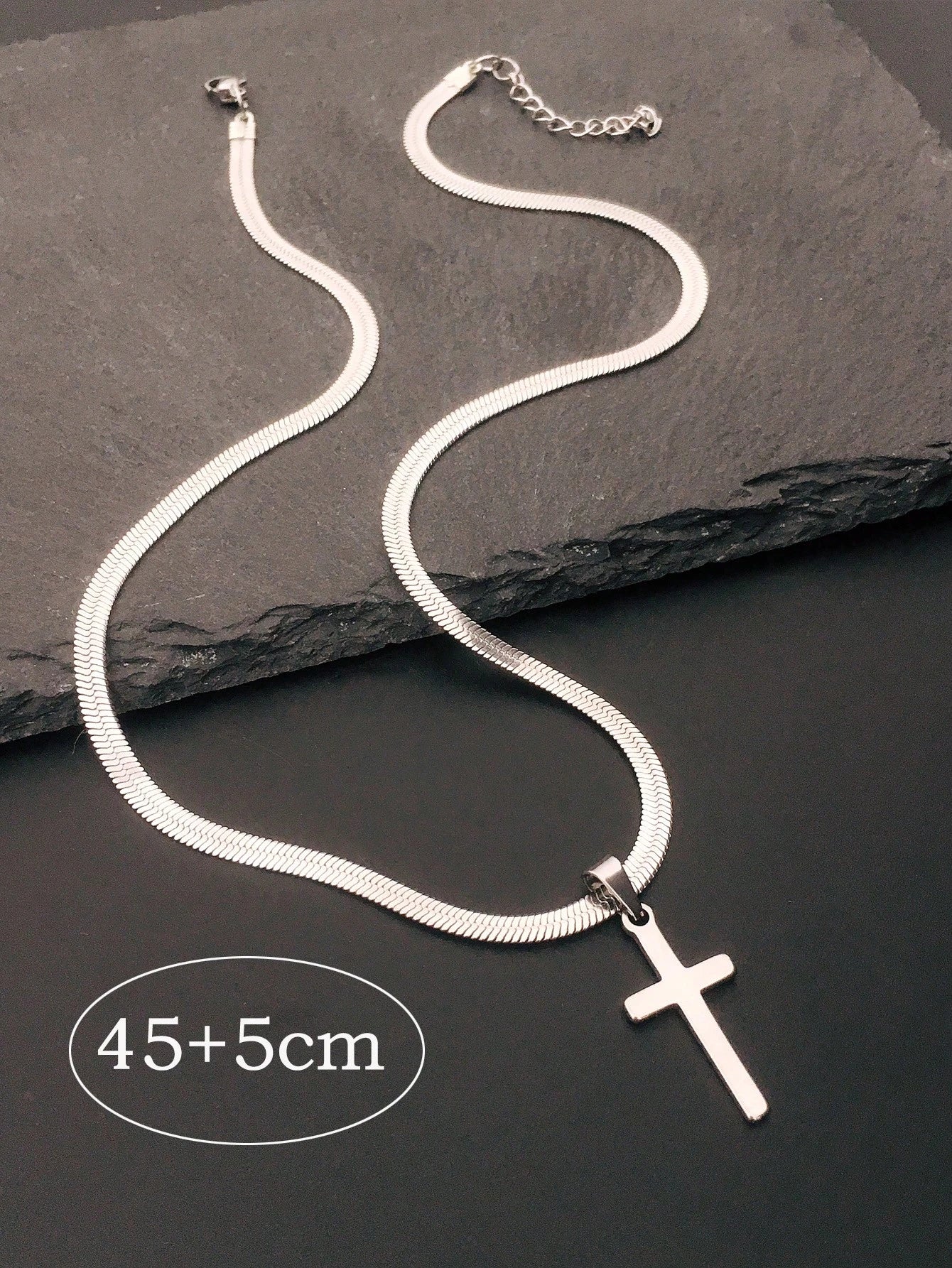 Este collar de cadena para hombre cuenta con un colgante en forma de cruz fabricado en acero inoxidable, garantizando durabilidad y resistencia al desgaste diario. Su diseño sobrio y elegante aporta un toque moderno y masculino, ideal para complementar cualquier estilo con un detalle significativo y duradero.