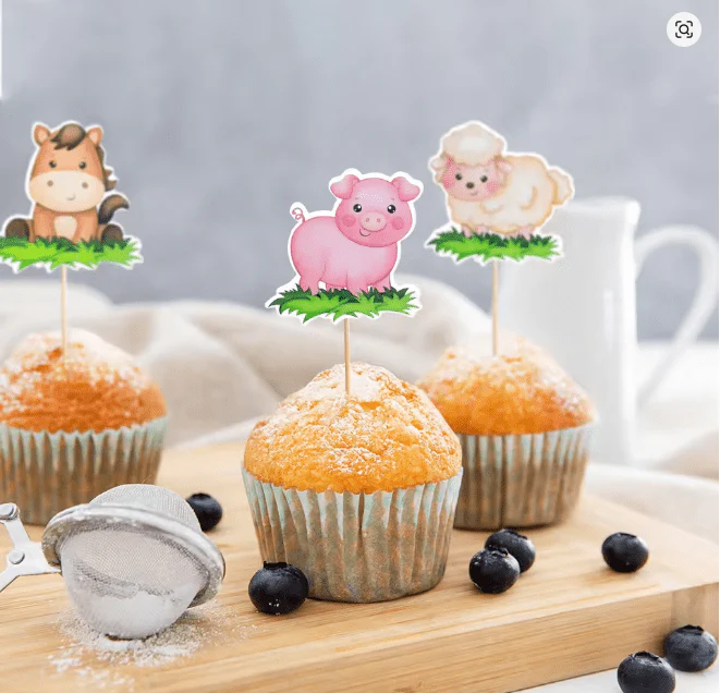 Estos adornos de papel para magdalenas, con motivos de animales de granja, son ideales para decorar pasteles temáticos de patio. El set incluye 8 unidades, perfectas para fiestas infantiles, baby showers y eventos DIY. Su diseño detallado aporta un toque divertido y auténtico, facilitando una presentación atractiva y profesional en tus celebraciones.
