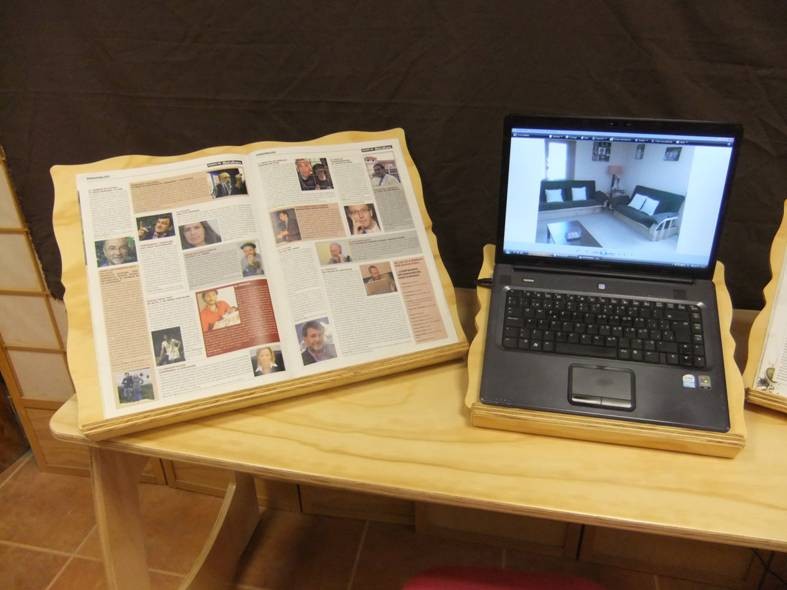 Atril de sobremesa modelo Pergamino. Inclinación regulable con varias posiciones. Tamaño periódico abierto A2 . 65 x 47 centímetros. Para leer en condiciones cuidando las cervicales y acabando de ordenar y alinear la columna imaginariamente por la coronilla.Artistas, Músicos, atlas, etc. Acabado eco.