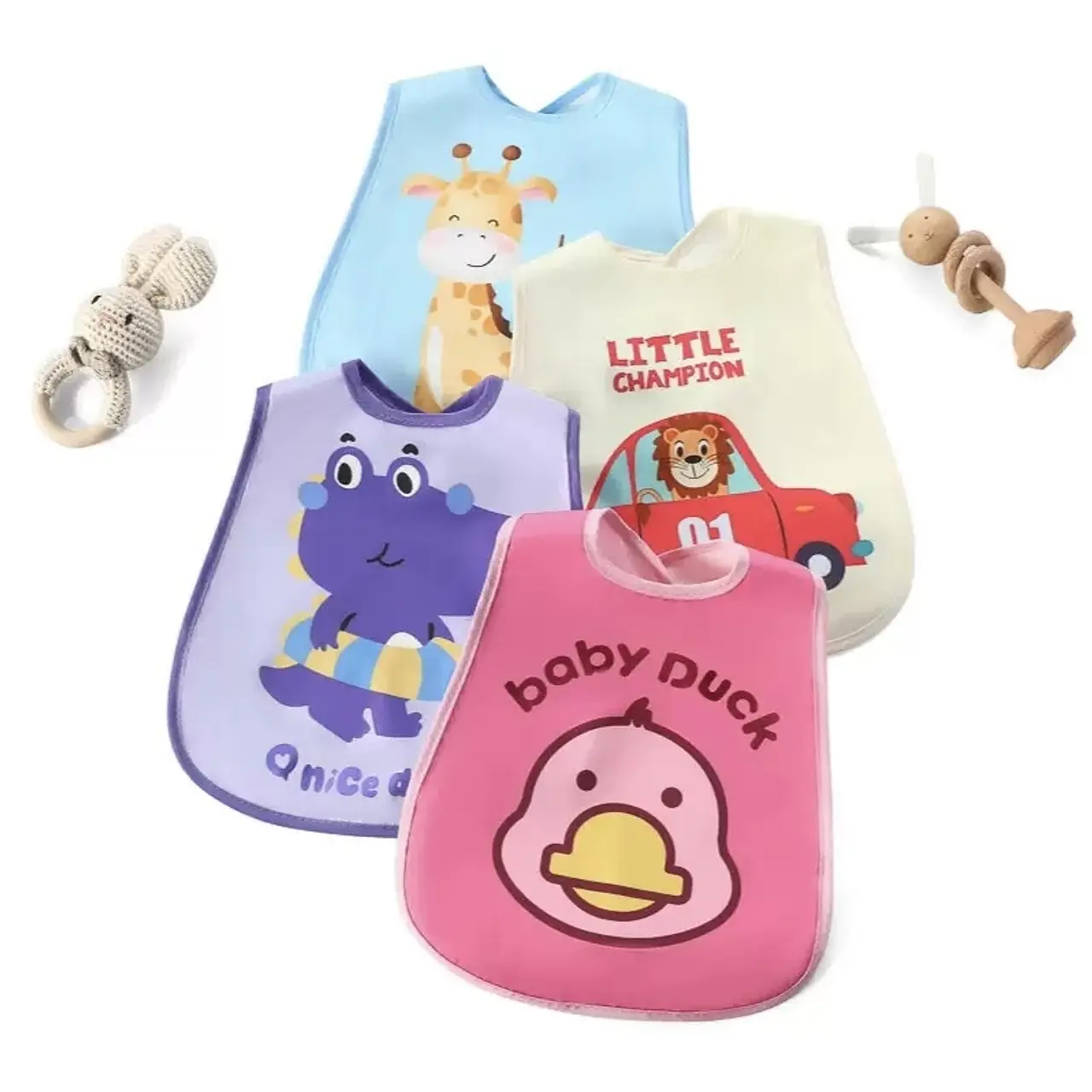 Hermosos baberos con bolsillito para residuos.