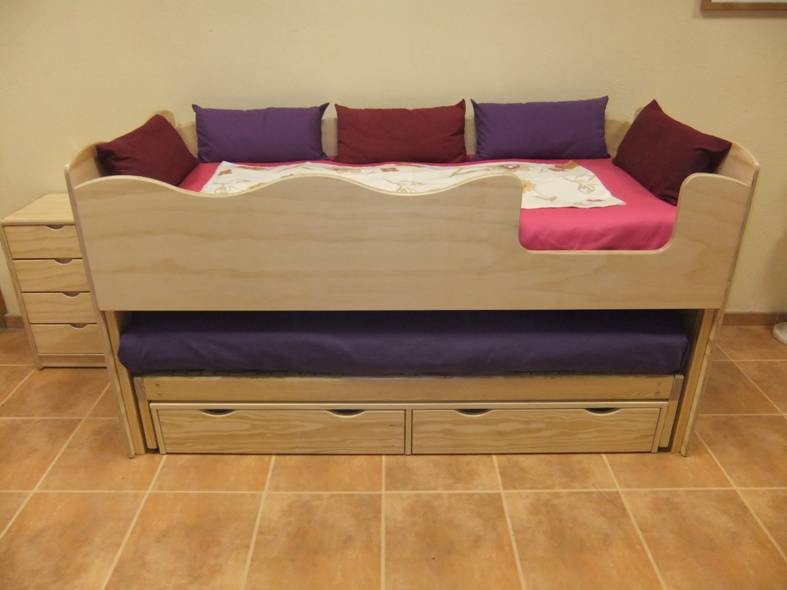 Cama nido de 90 x 200 superior / 90 x 190 inferior con ruedas. Altura cama 68 cms. modificable (para colchón de abajo de 25 cms.)