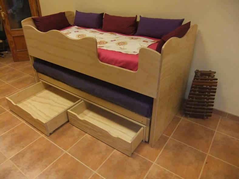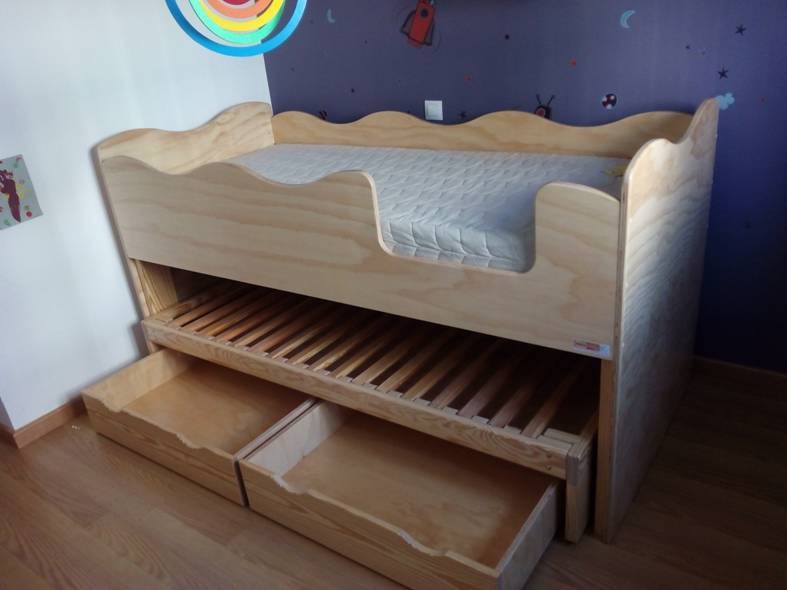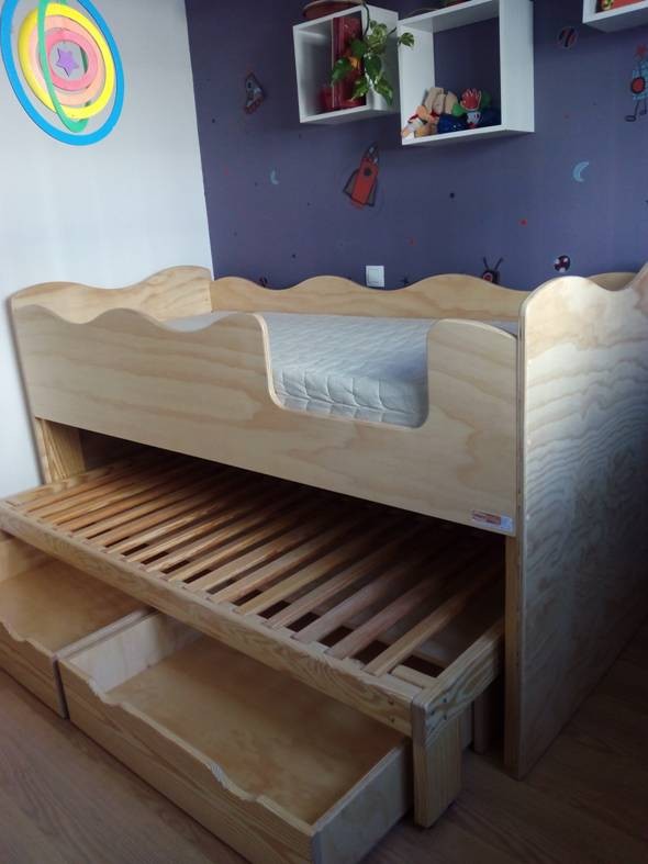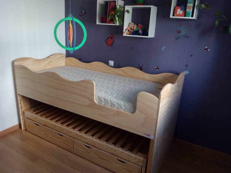 Con 2 Cajones de gran capacidad. Barandilla con armoniosas ondas planas. Es desmontable y se puede quitar si en un futuro no la necesitamos.