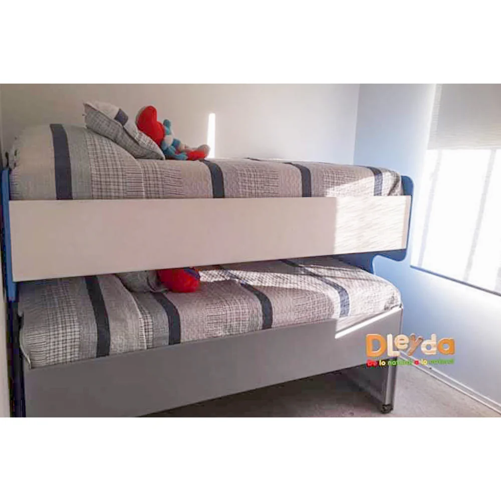 Si tenemos hijos seguidito y hay que compartir dormitorio (por necesidad o por gusto) las camas nido son una excelente opción. Pero el problema de muchas camas nido es que no están hechas para el uso diario, sino ocasional: hay que hacer la cama completamente cada vez que se use porque no hay espacio suficiente para guardar la cama hecha. ¡Pero eso no ocurre con nuestra Cama Nido! Ya ves que hasta la almohada y el peluche tienen cabida en este hermoso modelo.
