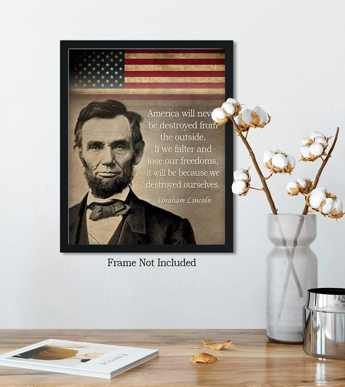 - Único y llamativo: esta impresión de decoración de pared con cita de Abe Lincoln sin marco hace una declaración de diseño interesante y añade carácter en cualquier lugar donde se muestre.