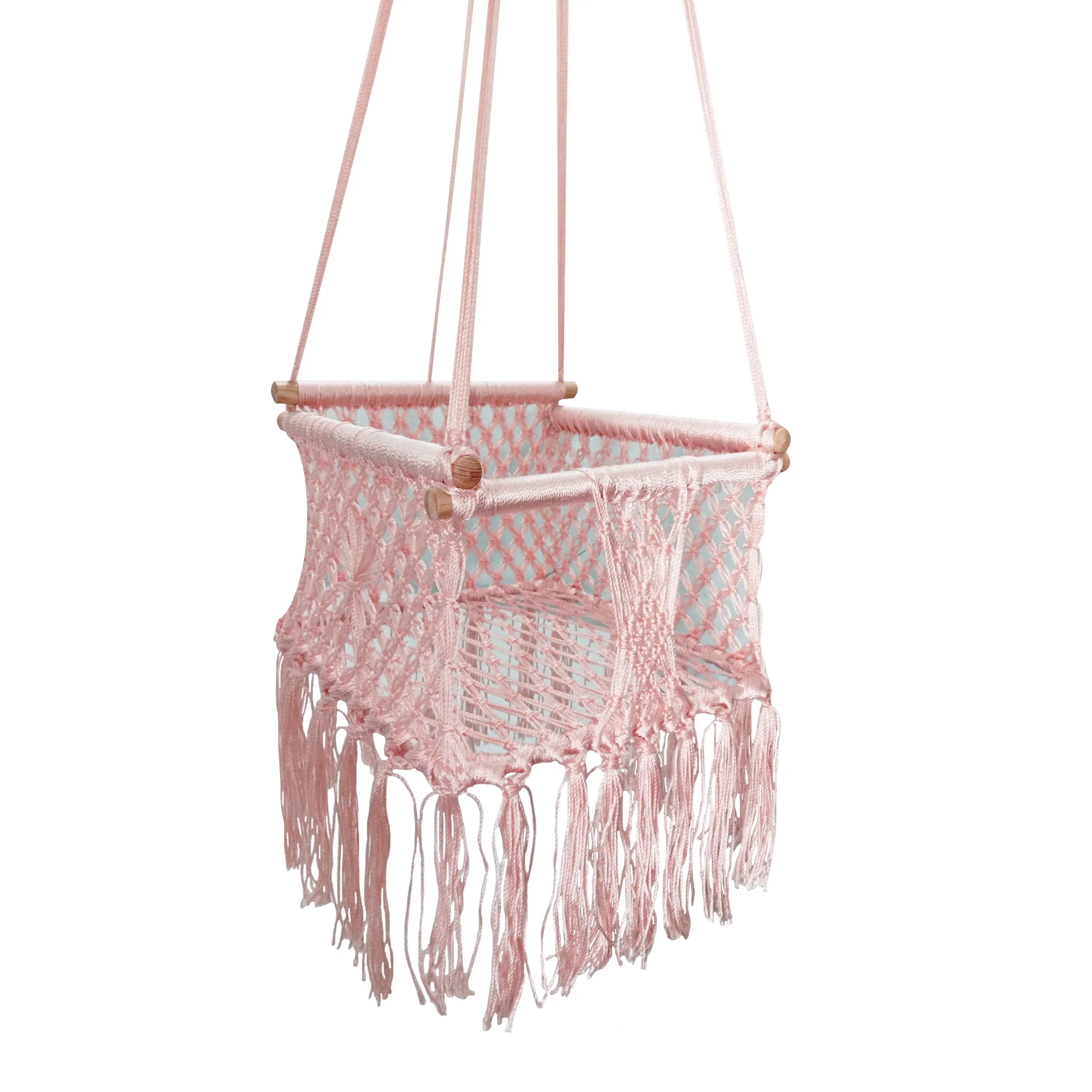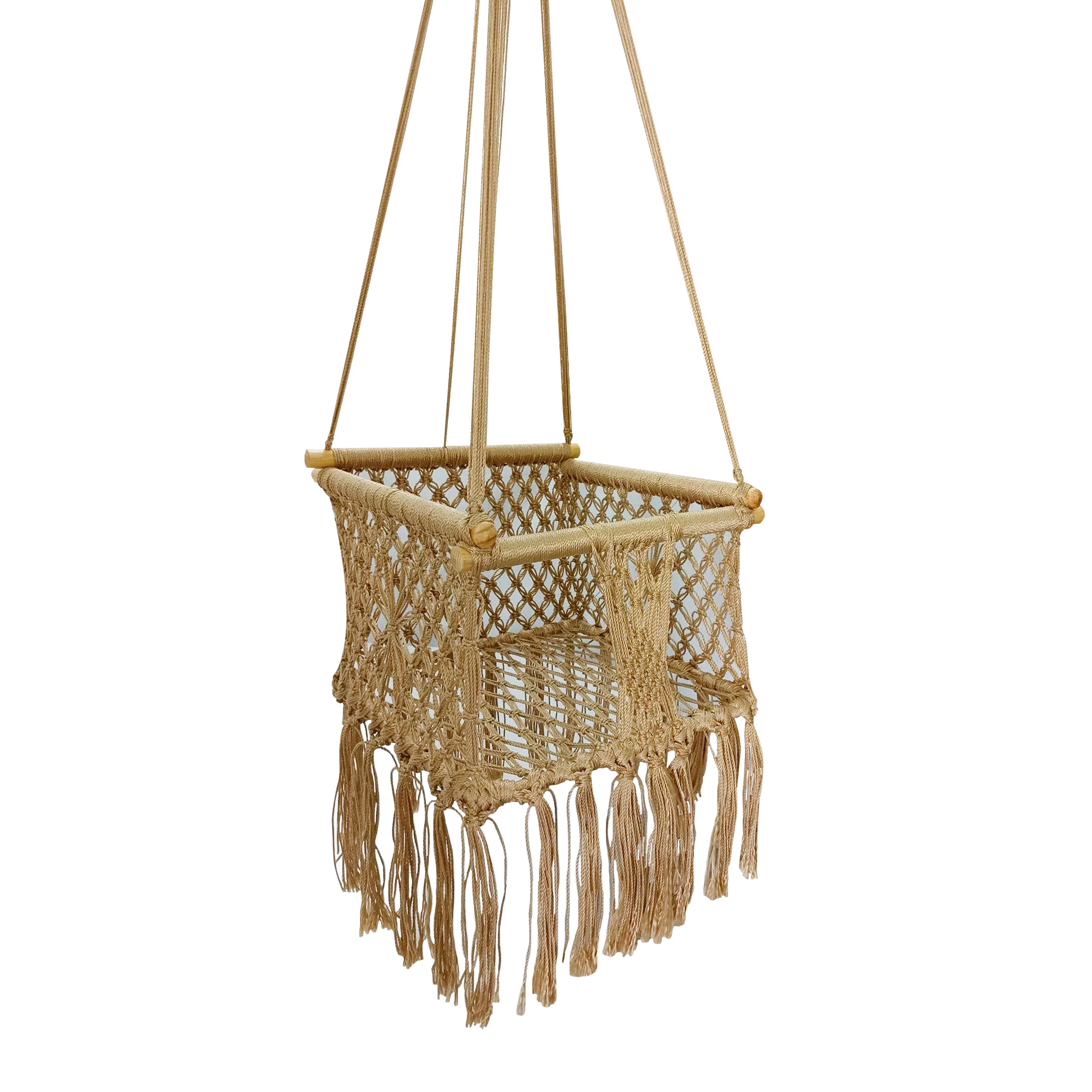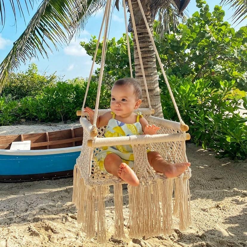 Columpio de algodón para bebé realizado a mano con la técnica de tejido de macramé por artesanas mayas.