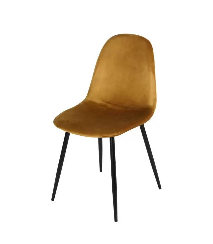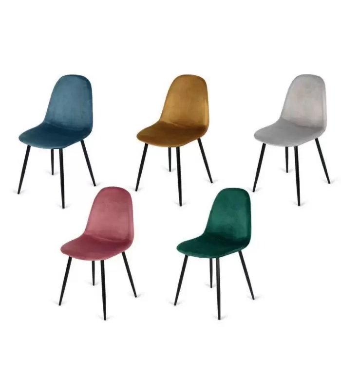 - Silla tapizada en tela Velvet, de colores Azul, Dorado, Gris Claro, Rosa o Verde.