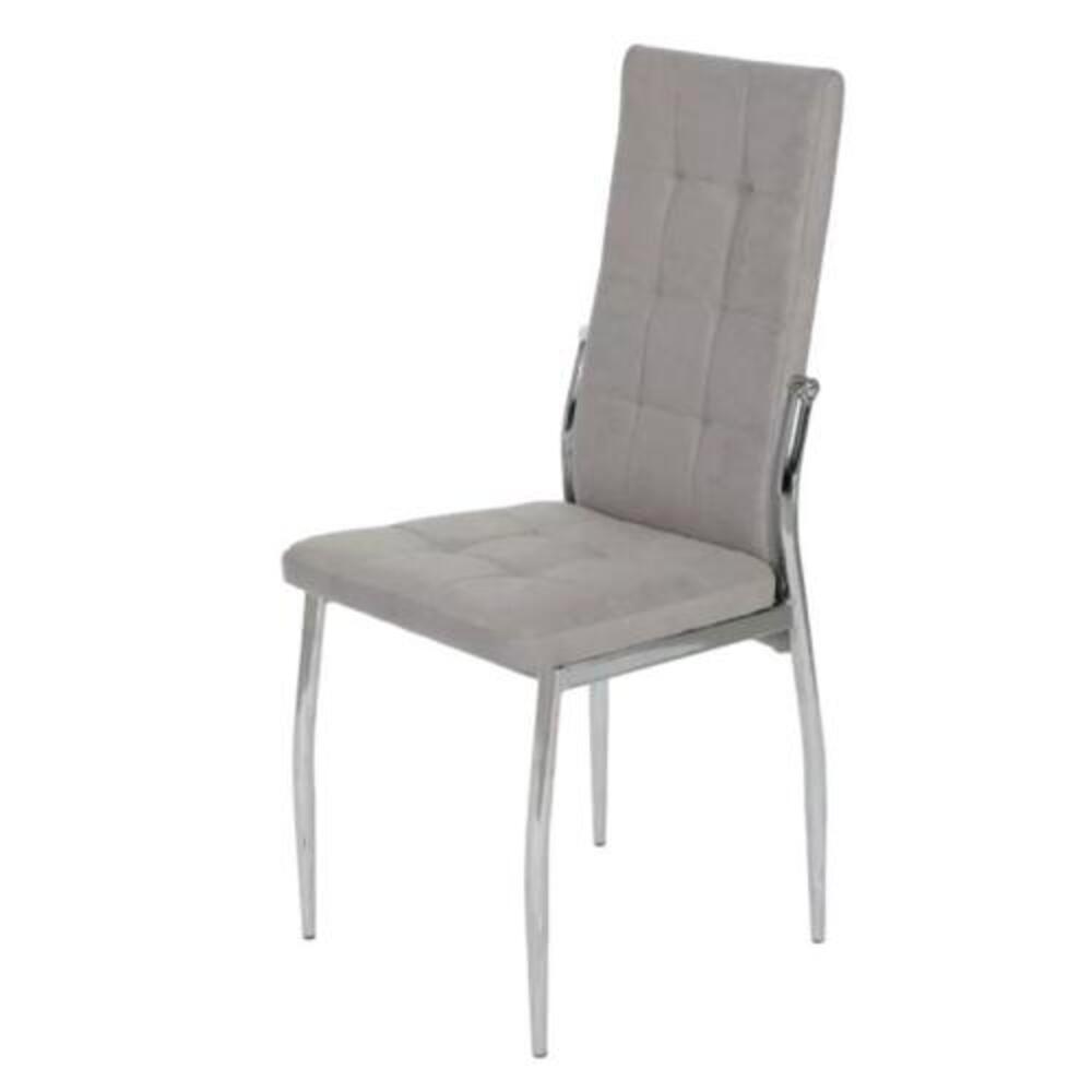- Silla tapizada en tela lido en colores Piedra o Gris con costuras tanto en respaldo como en asiento formando cuadricula.