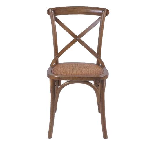 Silla vintage modelo Viena con estructura en madera maciza de OLMO y asiento de rattan natural.