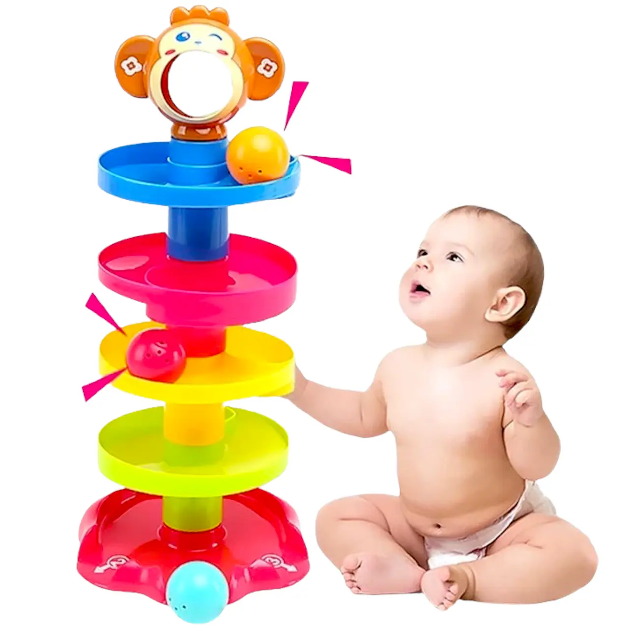 Hermoso juguete de estimulación para el desarrollo de motricidad y coordinación. Recomendado para 6-24 meses.