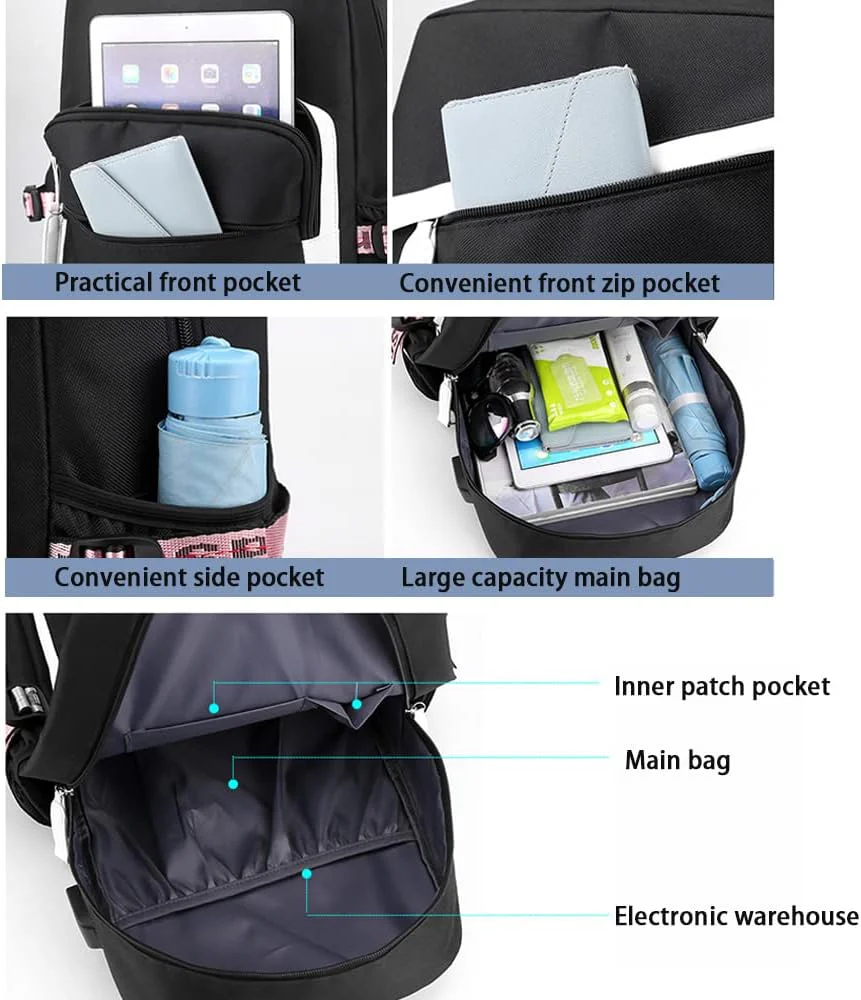 - Diseño de puerto USB: la mochila tiene un puerto USB y viene con un cable adaptador USB, lo que le permite conectar su propio tesoro de carga móvil. Carga en cualquier momento y en cualquier lugar. Esta mochila USB te ofrece una manera más conveniente de cargar tu teléfono mientras caminas. Hay un diseño de puerto de auriculares junto al puerto USB, lo que te permite disfrutar de una hermosa música en cualquier momento y en cualquier lugar. Ten en cuenta que esta mochila no se alimenta sola, el puerto de carga USB solo ofrece un fácil acceso para cargar