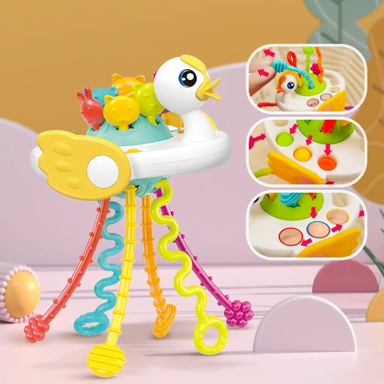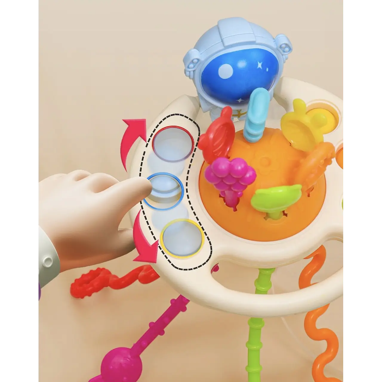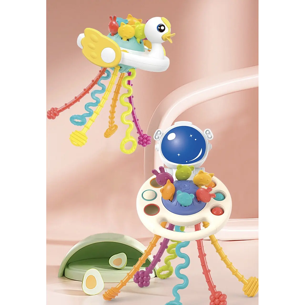 Descubre nuestros coloridos mordedores, diseñado relajar y estimular los sentidos de tu bebé. Hecho de 100% silicona de grado alimentario, es totalmente libre de BPA y ftalatos, garantizando un juego seguro.