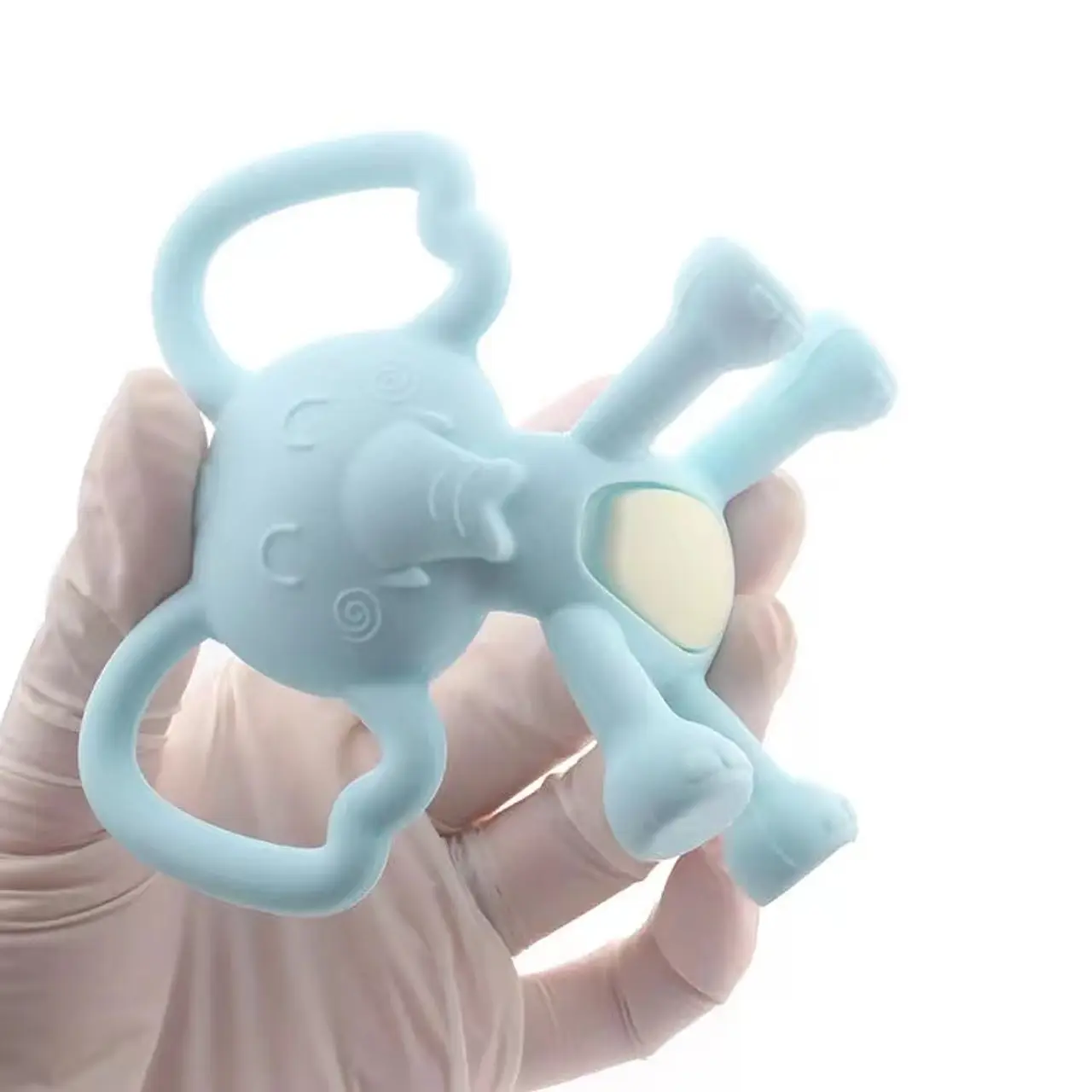 Descubre nuestra mordedor de elefantito, diseñado relajar y estimular los sentidos de tu bebé. Hecho de 100% silicona de grado alimentario, es totalmente libre de BPA y ftalatos, garantizando un juego seguro.