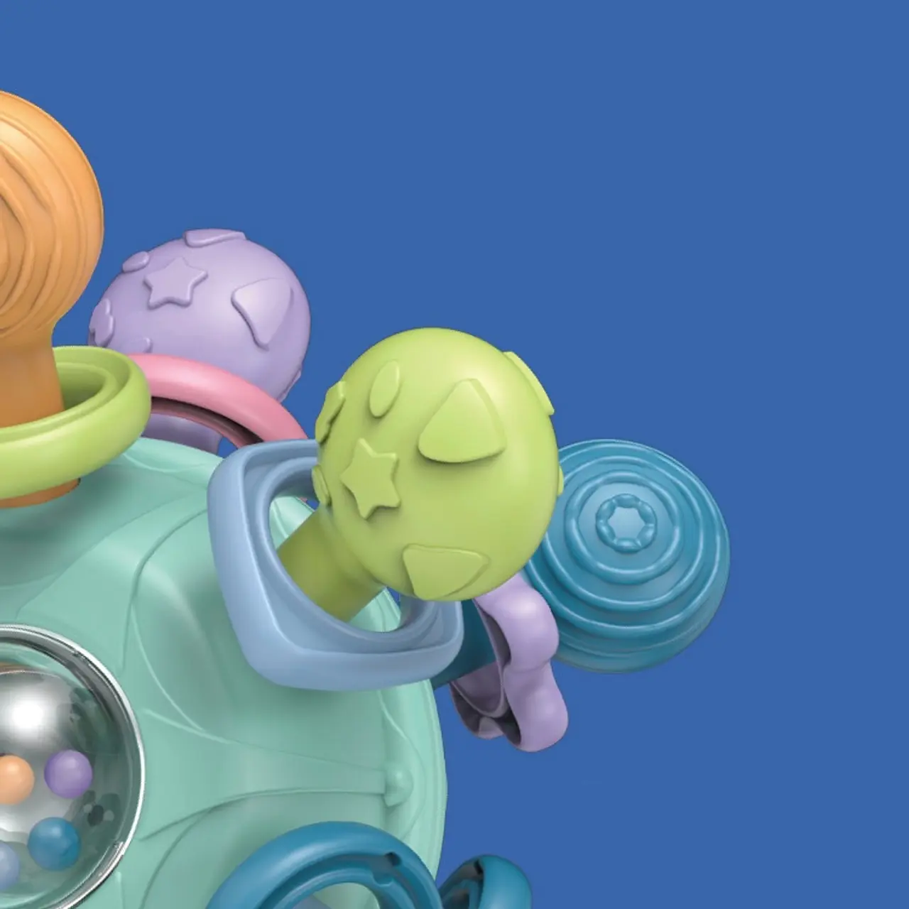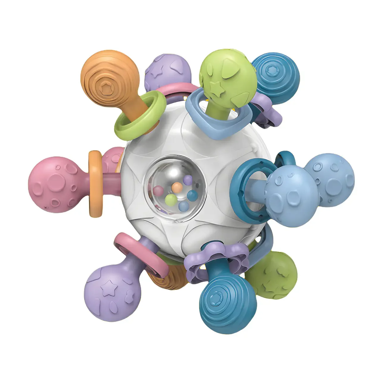 Descubre nuestra pelota con sonajero, diseñada para estimular los sentidos de tu bebé. Hecha de plástico y silicona de grado alimentario, es totalmente libre de BPA y ftalatos, garantizando un juego seguro.