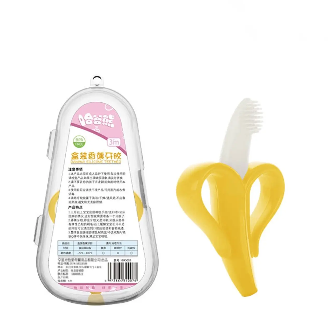 Descubre nuestra mordedor de plátano, diseñado para relajar y estimular los sentidos de tu bebé. Hecho de 100% silicona de grado alimentario, es totalmente libre de BPA y ftalatos, garantizando un juego seguro. Incluye cajita plástica