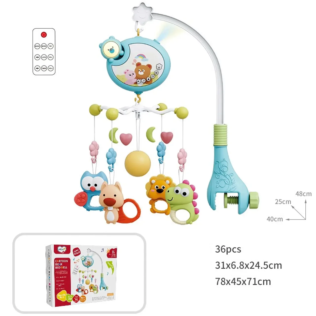 Móvil para cuna con sonidos y luces: el compañero perfecto para los dulces sueños de tu bebé. 🍼✨ Con melodías relajantes, proyecciones de luces suaves y un diseño adaptable, se ajusta fácilmente a cunas, coches y camas. Incluye un práctico control remoto para que puedas manejarlo sin interrumpir el descanso de tu pequeño. ¡Confort y magia en un solo dispositivo!