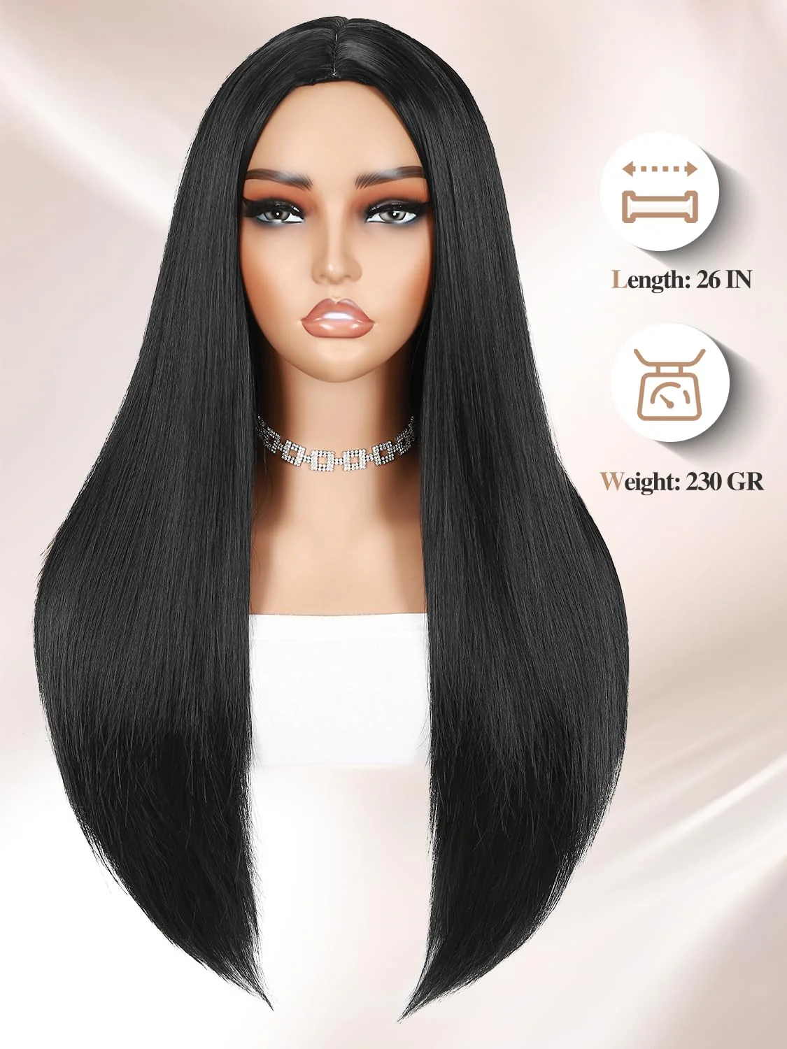 Peluca sintética de 24 pulgadas con textura lisa y natural que ofrece versatilidad sin compromisos. Su construcción sin pegamento facilita la colocación y el retiro, permitiendo cambios de estilo rápidos y sencillos. El cabello sintético de alta calidad mantiene su forma y brillo tras múltiples lavados, resistiendo el calor moderado. Ideal para quienes buscan transformar su apariencia con comodidad y practicidad. Perfecta para uso diario o ocasional, esta peluca combina durabilidad con un acabado que simula cabello natural auténtico.