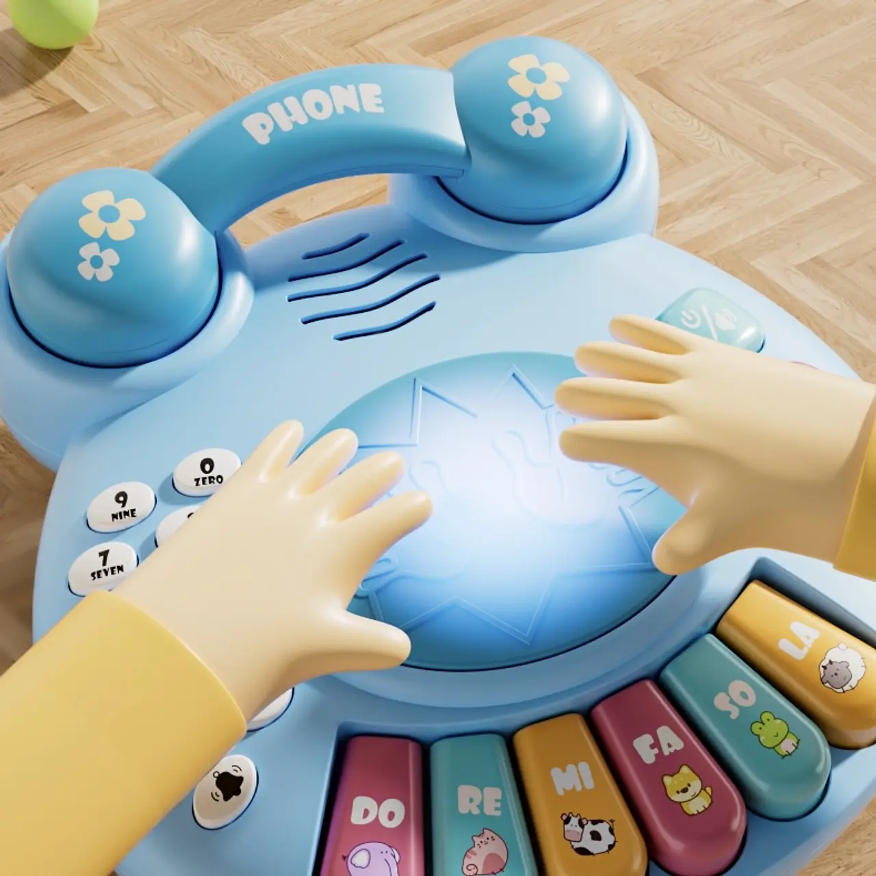 Hermoso piano musical con forma de teléfono con luz para descubrir la faceta musical de tu pequeño tesoro.