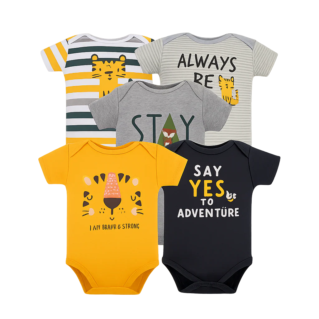 Sé el primero en valorar “Set 5 Bodys Manga Corta Tigre”