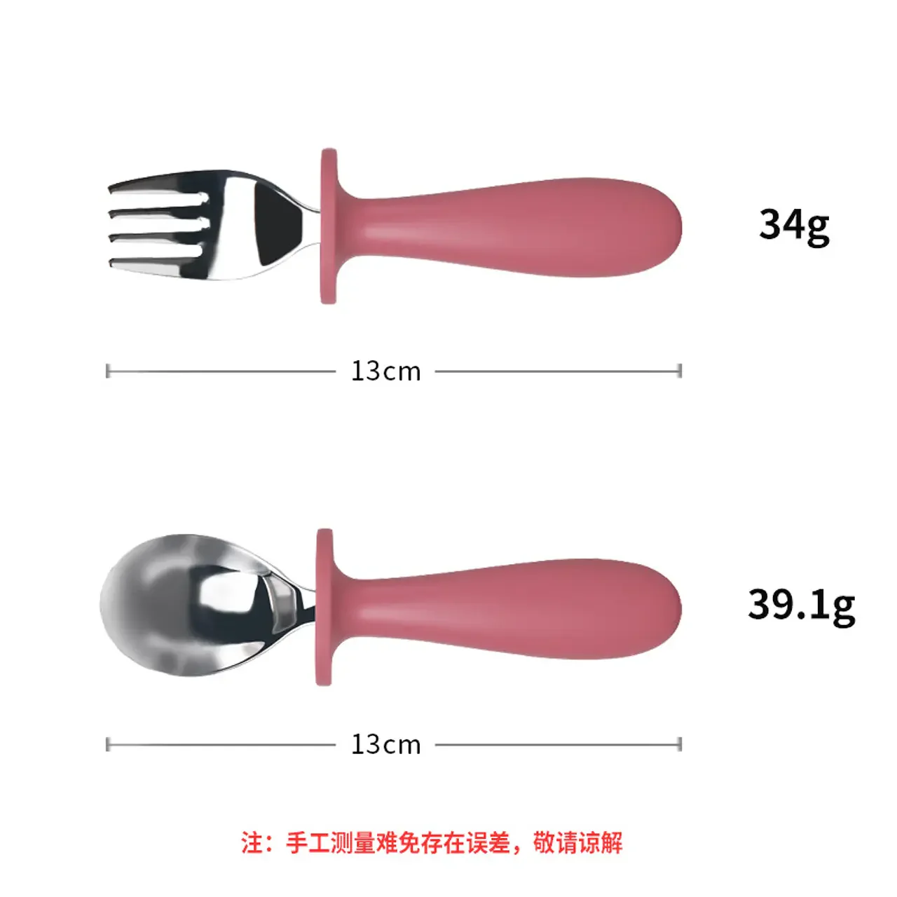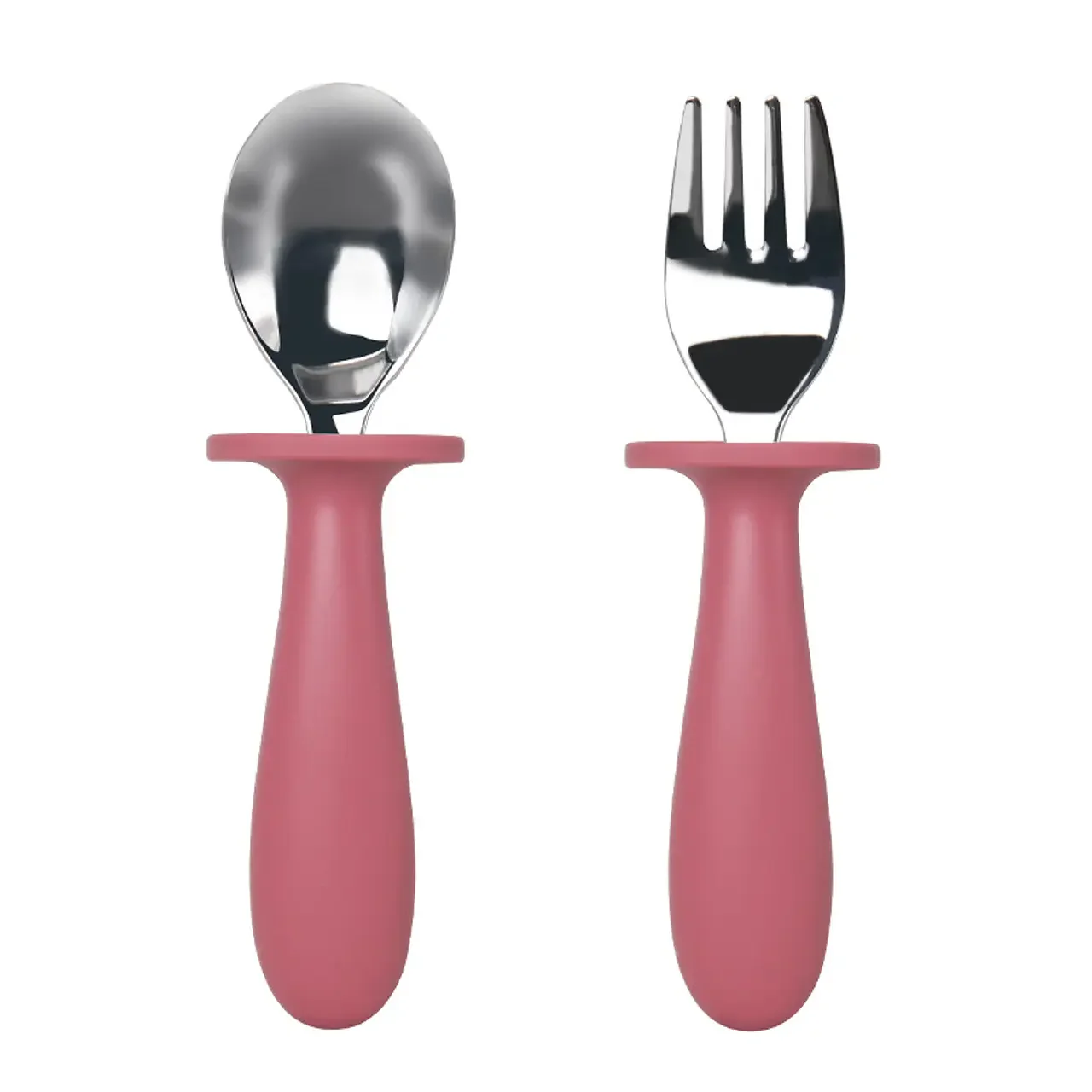 Pack de cuchara y tenedor para bebés. Color aleatorio.. Ideal para alimentación complementaria a partir de los 12 meses.