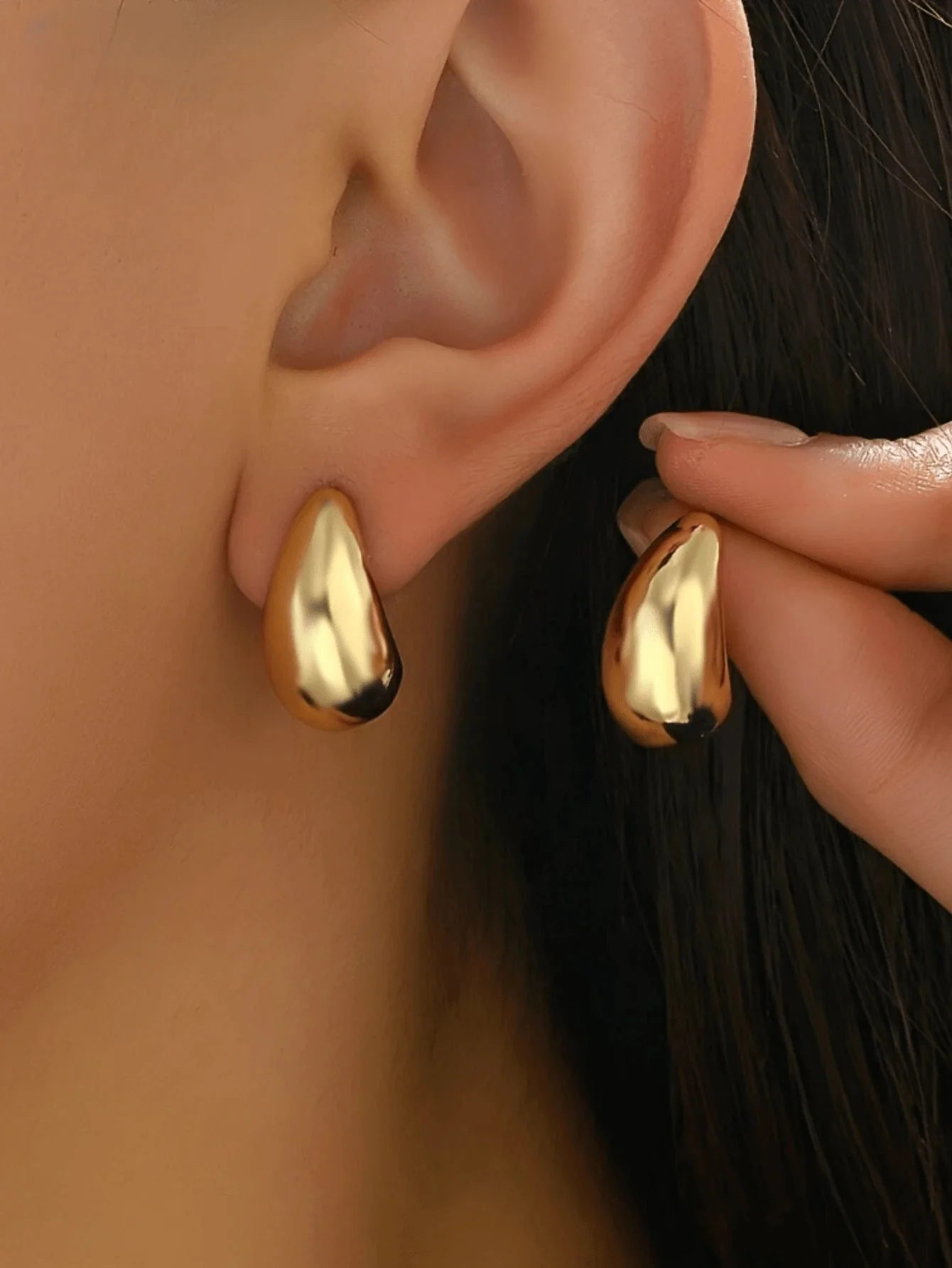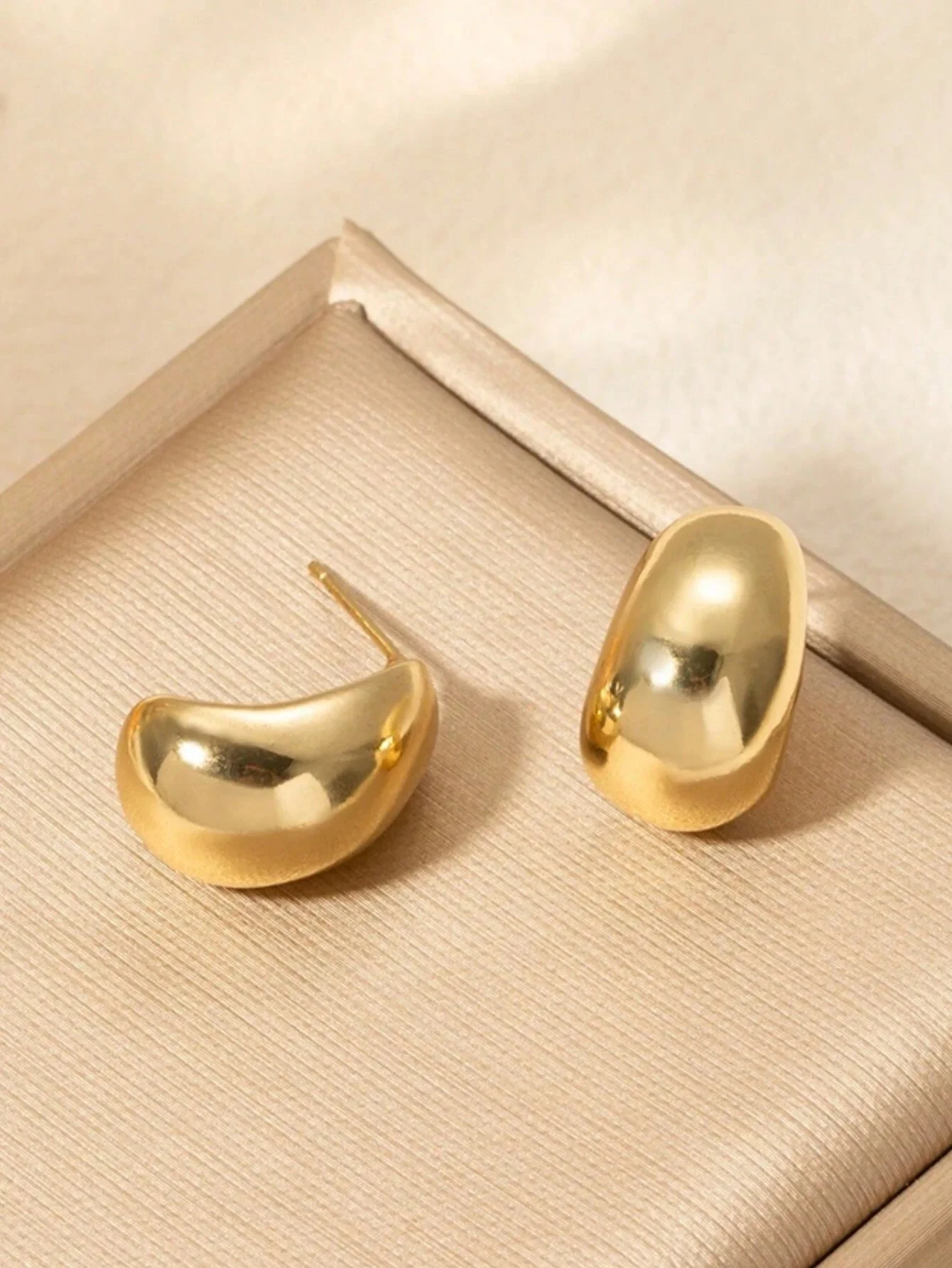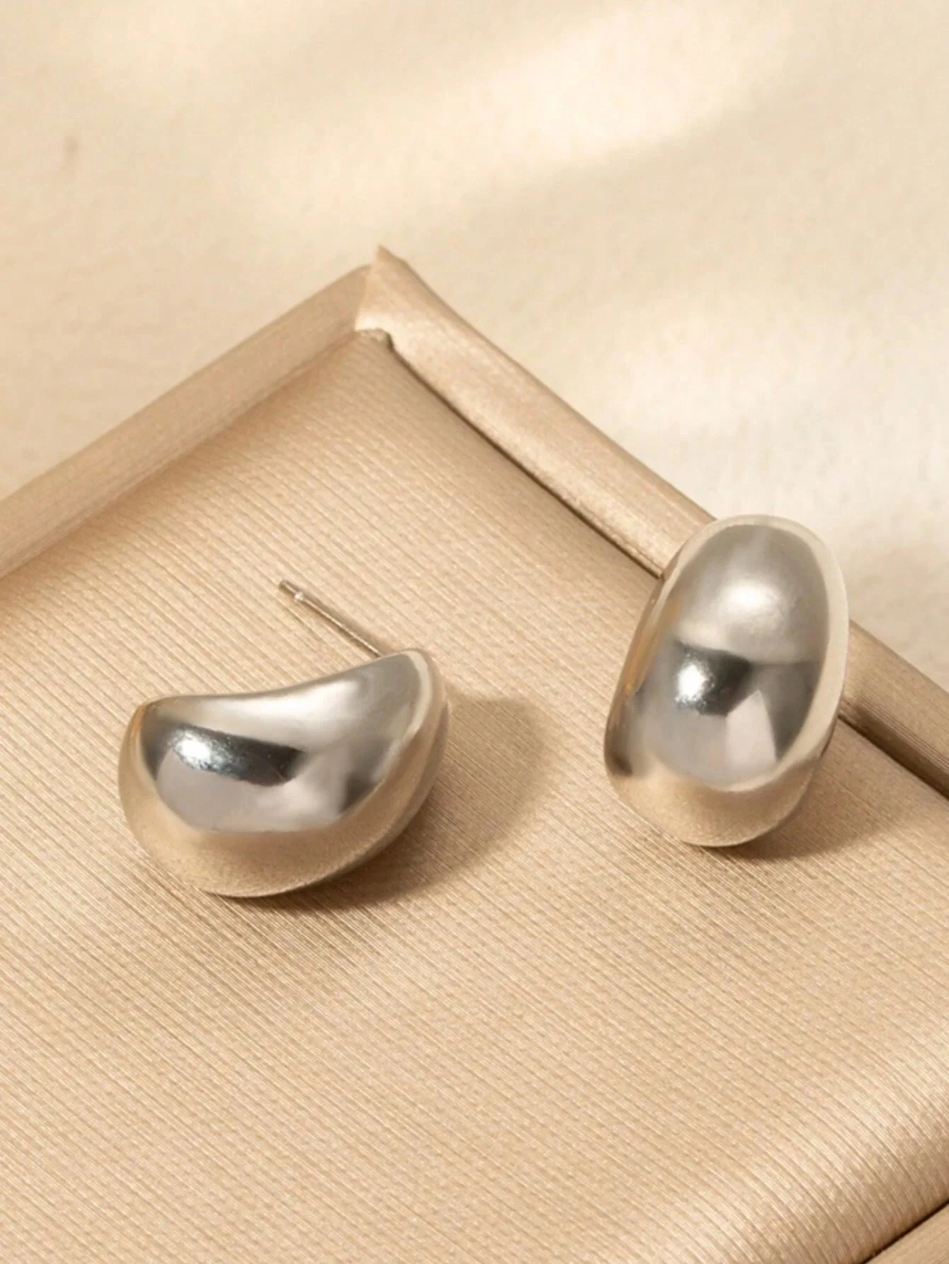 Estos pendientes de botón ovalados combinan un diseño sencillo y moderno con un acabado metálico brillante en forma de gota de agua. Su estilo clásico y versátil los hace ideales para cualquier ocasión, aportando un toque elegante y sofisticado a tu look diario o eventos especiales. Perfectos para quienes buscan accesorios discretos pero con presencia.