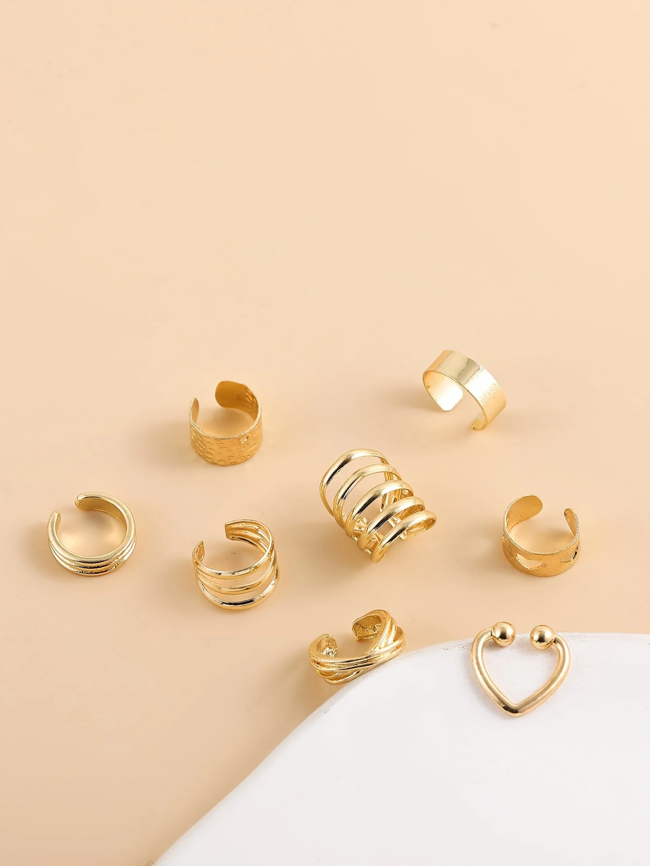 Descubre la elegancia sutil con el set de 8 piezas de Cuff de oreja minimalista de Shein. Diseñados para aportar un toque moderno y sofisticado, estos accesorios versátiles se adaptan cómodamente a diferentes estilos y ocasiones. Su diseño minimalista permite combinarlos fácilmente, realzando tu look sin sobrecargarlo. Perfectos para quienes buscan un detalle delicado que marque la diferencia en su estilo diario.