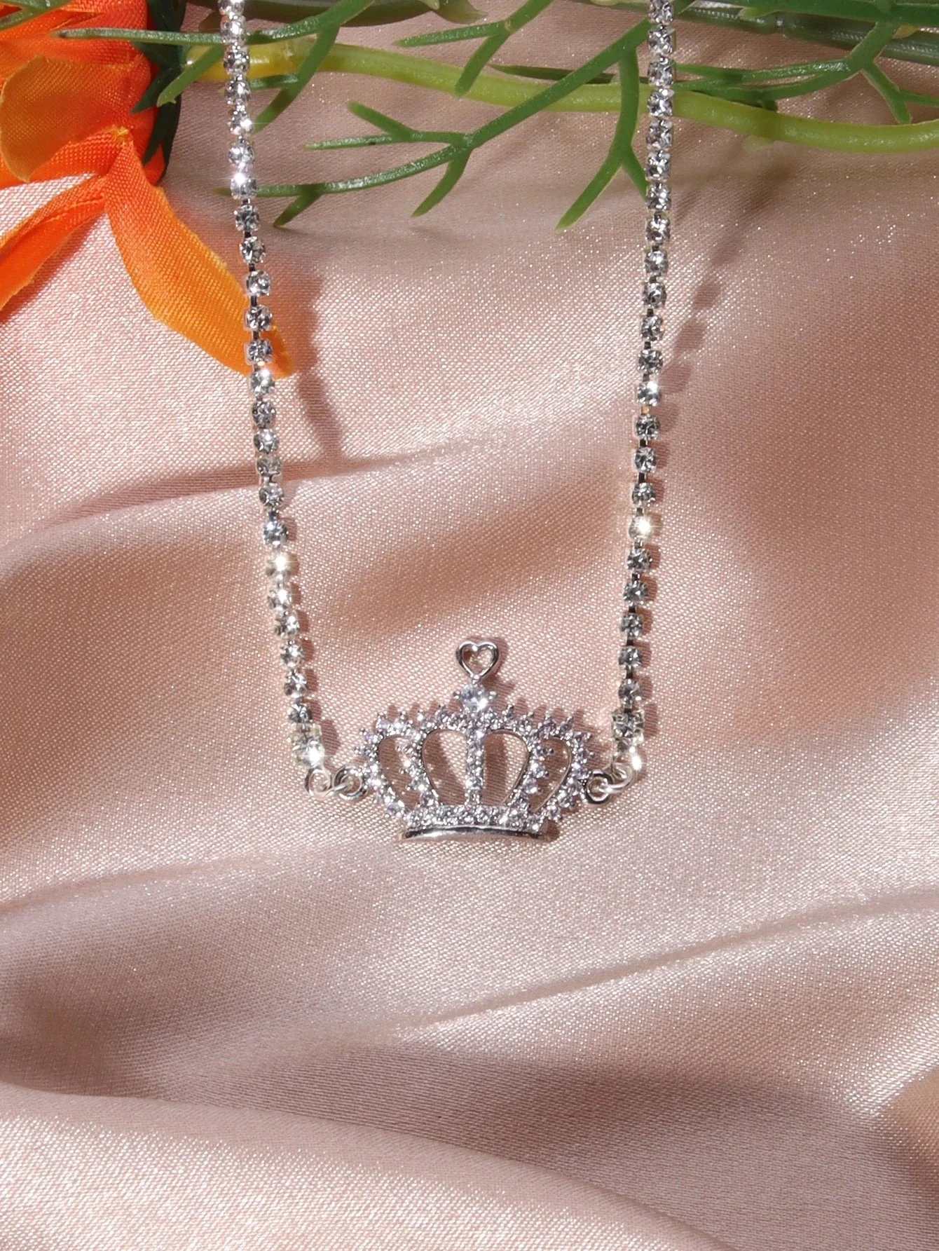 Elegante collar con diseño de corona adornado con diamantes de imitación de alta calidad. Esta pieza de joyería combina sofisticación y estilo, realzando cualquier atuendo con un toque de distinción real. Fabricado con materiales duraderos que mantienen su brillo y belleza con el paso del tiempo.