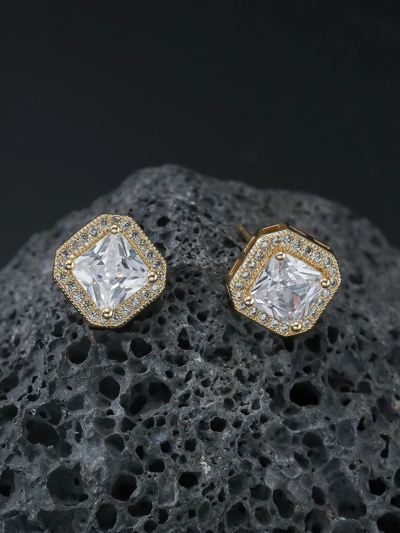 SHEIN Pendientes de tuerca de cobre con decoración de circonita cúbica