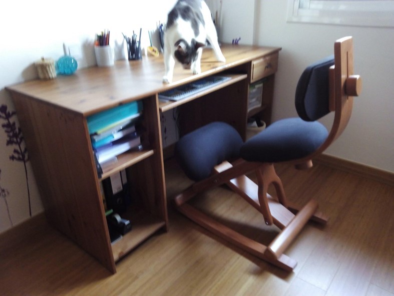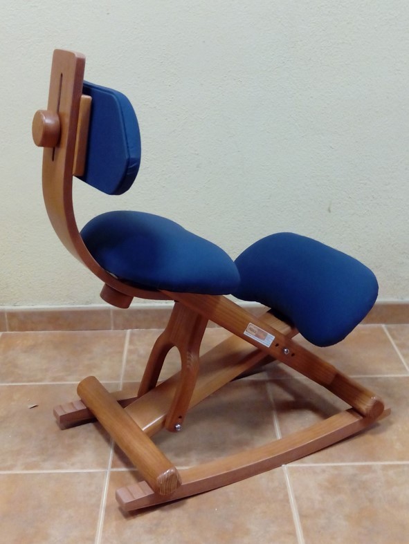 Versión con color de madera.Se realiza por encargo, 2 dias más de preparación, en Cerezo, Roble, Nogal, en coordinación con el amueblamiento del hogar u oficina.Ahora con el asiento pivotante, libera la cadera y habilita para el cambio de posturas en la misma silla con el Rodillero movil. Plus de confort, más horas en la misma silla, cambiando de posición.